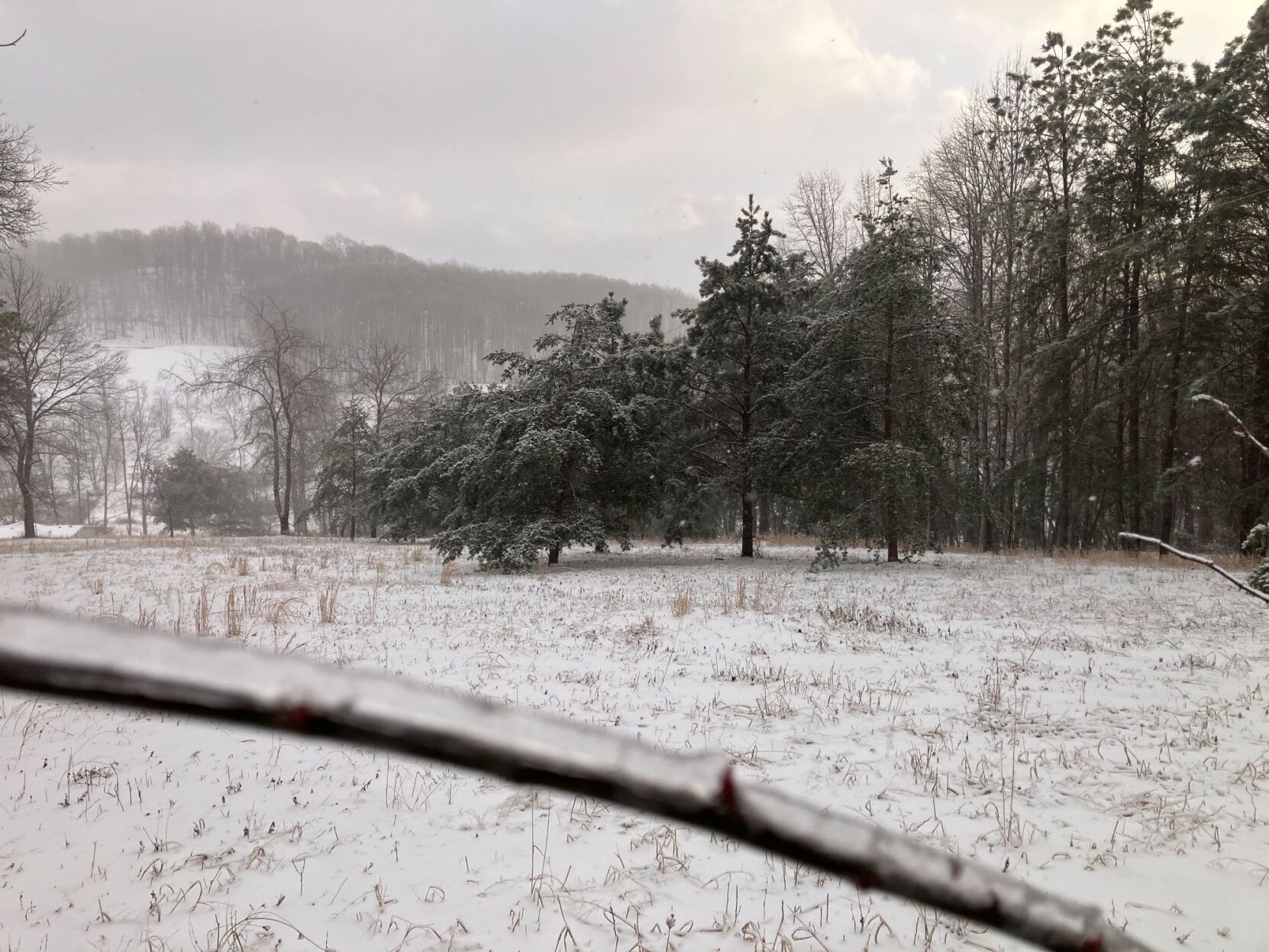 Ice clings to trees near Rural Retreat.
