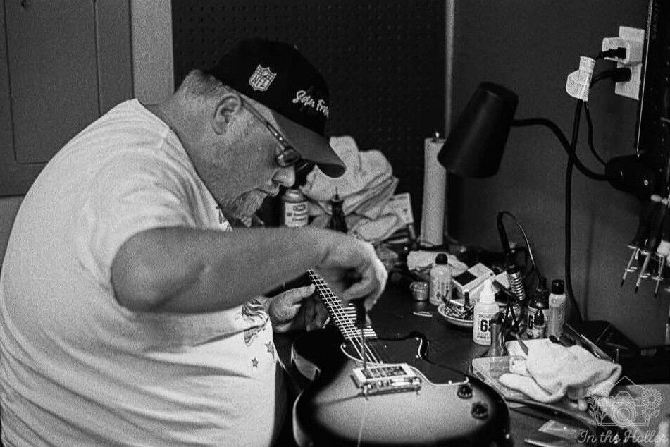 Chris Blankenship works on building a custom guitar at his new business, Rhythmic Restorations, LLC. The Richlands area business is a recent recipient of a VCEDA seed capital matching grant.