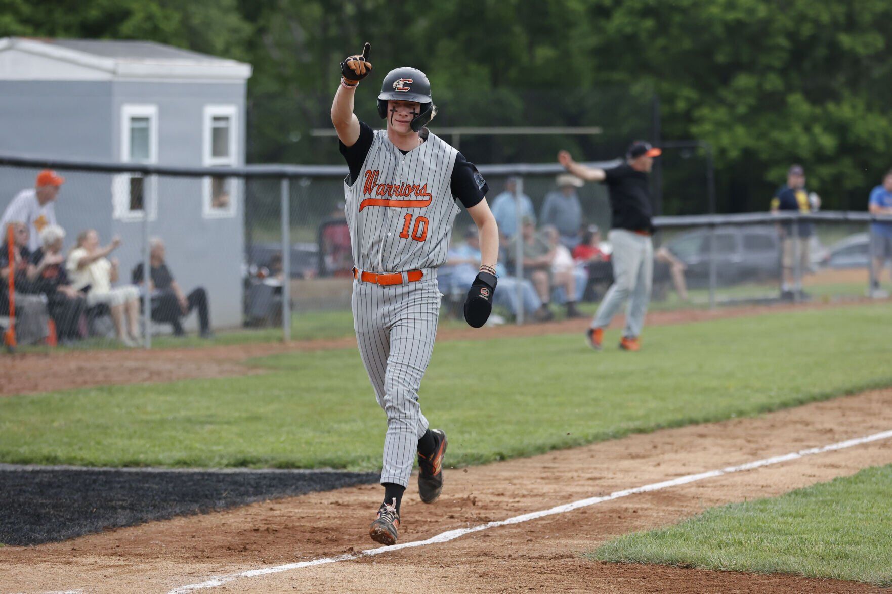 Chilhowie's Asher Chapman celebrates as he comes across home plate to score a run against Rye Cove in the Region 1D Tournament.