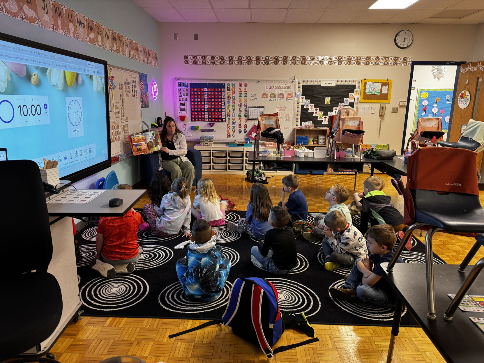 A Farm Credit employee reads to students at Sheffey Elementary School.